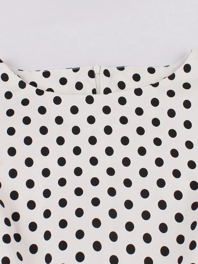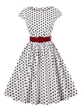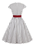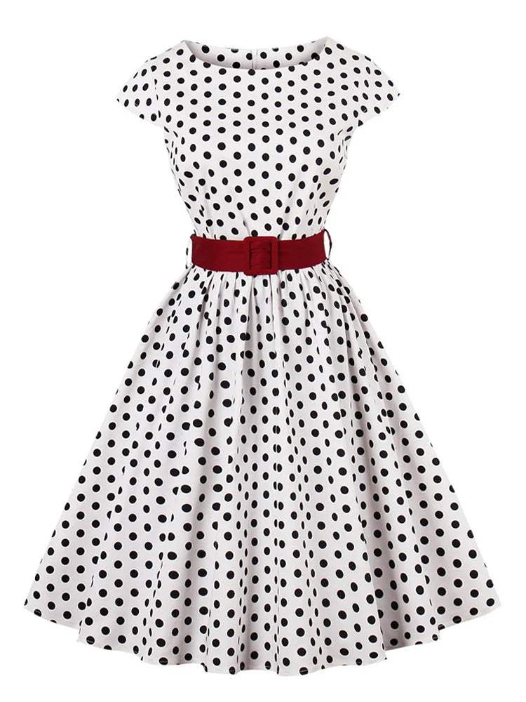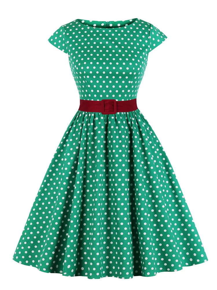 Green Retro Polka Dot 1950s Rockabilly Pleated Belted Dress Cap Sleeve Summer Women High Waist Vintage Dresses