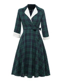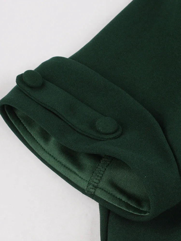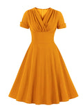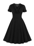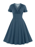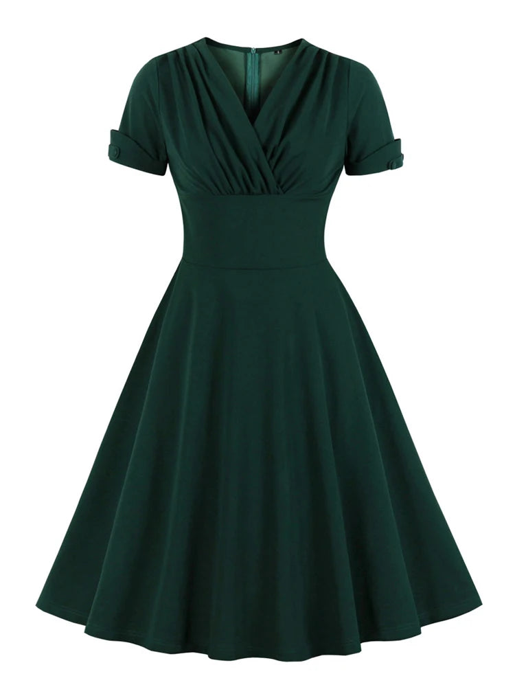 Ruched V Neck Wrap High Waist 1950S Vintage Green A Line Swing Dresses Women Summer Solid Elegant Party Midi Dress
