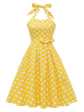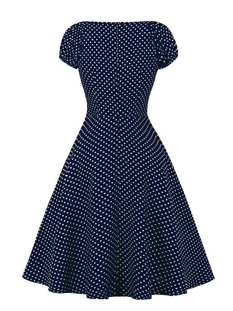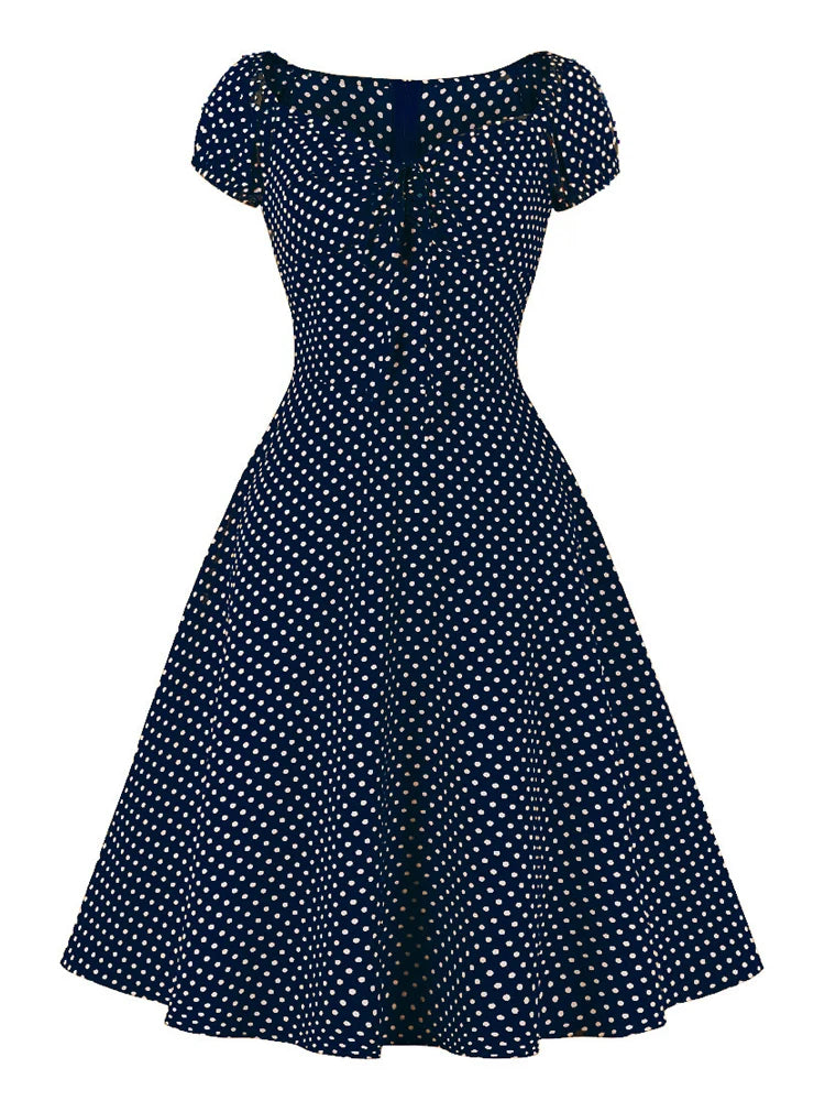 Tie Sweetheart Neck Polka Dot Vintage Women Summer Dress High Waist Retro Ladies Casual 1950s Style Dresses