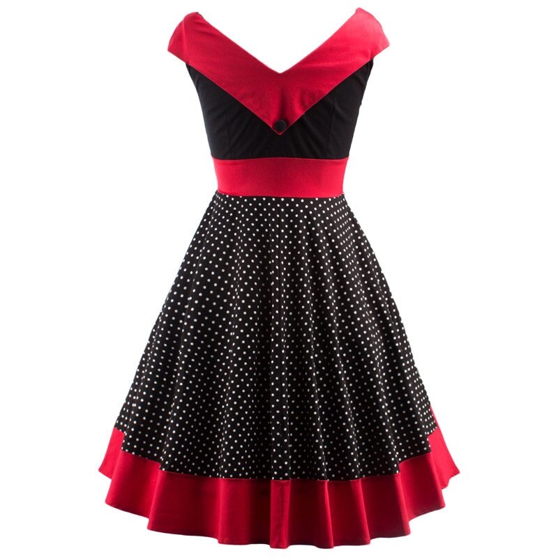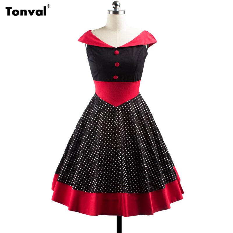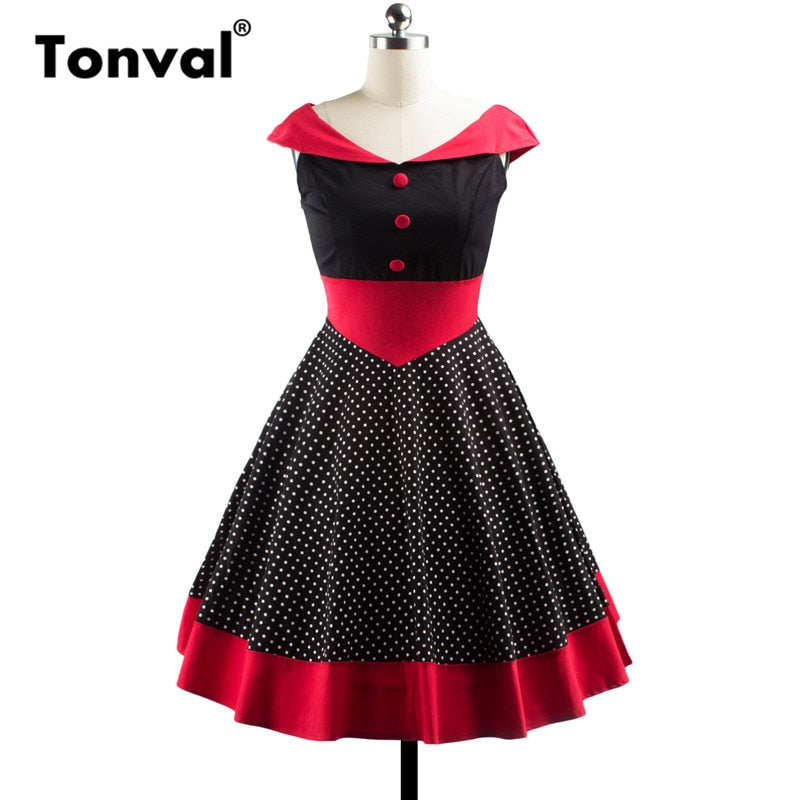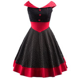 Vintage Polka Dot 1950S Pin up Cotton Off Shoulder Evening Party Rockabilly Elegant Dress