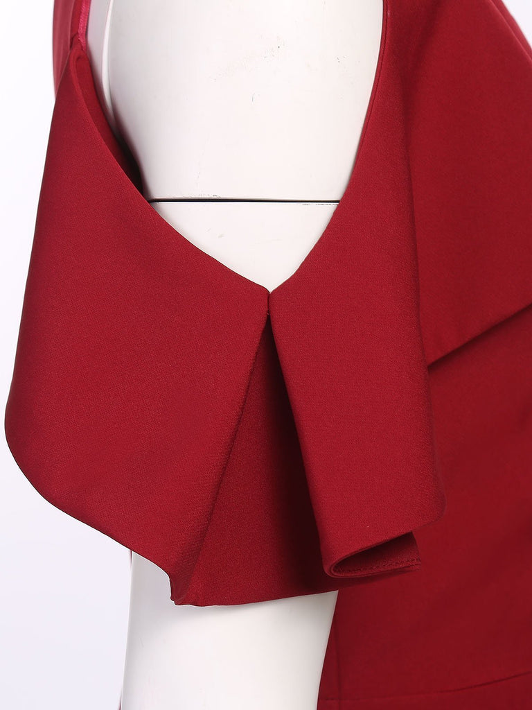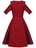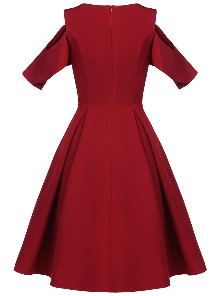 Bring them to their knees, dames!??This playful knee-length is?crafted in polyester?and features dancing?cold shoulder throughout?a wine red backdrop.?Outfitted with a back zipper?it¡¯s all about frolicking fun!?Crinoline added for volume, sold separately.