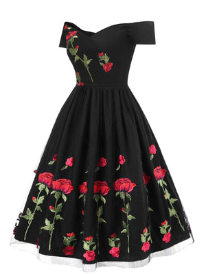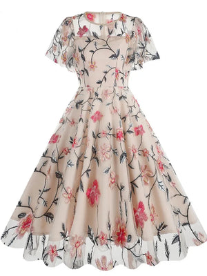 3/4 Sleeve 1950s Floral Embroidery Dress