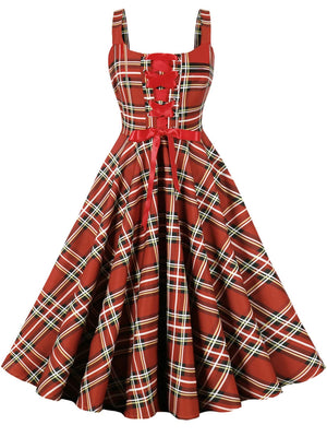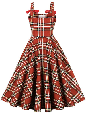 Red Plaid Print Sling Party Short Vintage Dress French Style 1950s Style Big Swing Pinup Runway Rockabilly Short Prom Dresses