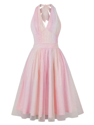 Backless Strapless Vintage Party Swing Dress 1950s Solid Polka Dot Print Elegant Office OL Halter Runway Short Cocktail Dresses