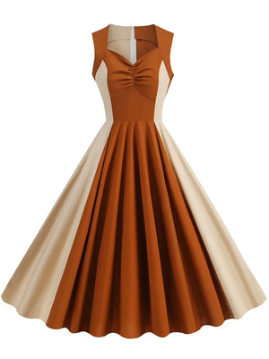 2024 Solid Patchwork Women Vintage 1950s Dress Elegant Summer Sleeveless 40s 60s Rockabilly Retro Cocktail Party Swing Dresses