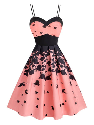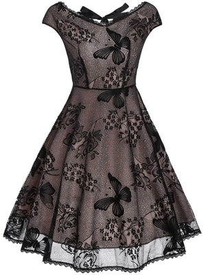 A sweet dress in fabulous 1950s vintage appeal fresh from Retro Stage. A gorgeous vintage style dress full of feminine radiance, the gorgeous pink and black silhouette is dancing with butterfly throughout the midcentury silhouette. Cast in an adorable pink,...