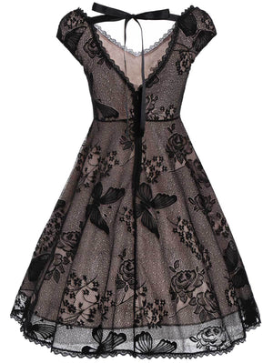 Shipping Fee: Free Shipping (Except For Remote Areas) Material: Polyester, LaceColor: BlackPattern: ButterflyNeckline: V NeckSleeve Type: Short SleeveFeature: Back Lace UpPackage Content: 1 x Women Skirt Dress7 Sizes available:Size: There are 7 sizes (S/M/L/XL/XXL/XXXL/4XL) available for the following listing. please...