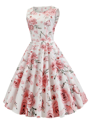 Casual bewitching, dames!?The swing dress is a gorgeous 1950s inspired frock for a vintage peach! Covered in a fabulous floral!?A vintage-inspired frock to steal their breath away, this sweet swing dress is cast in a stunning blue and pink and?dances...