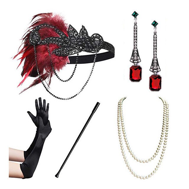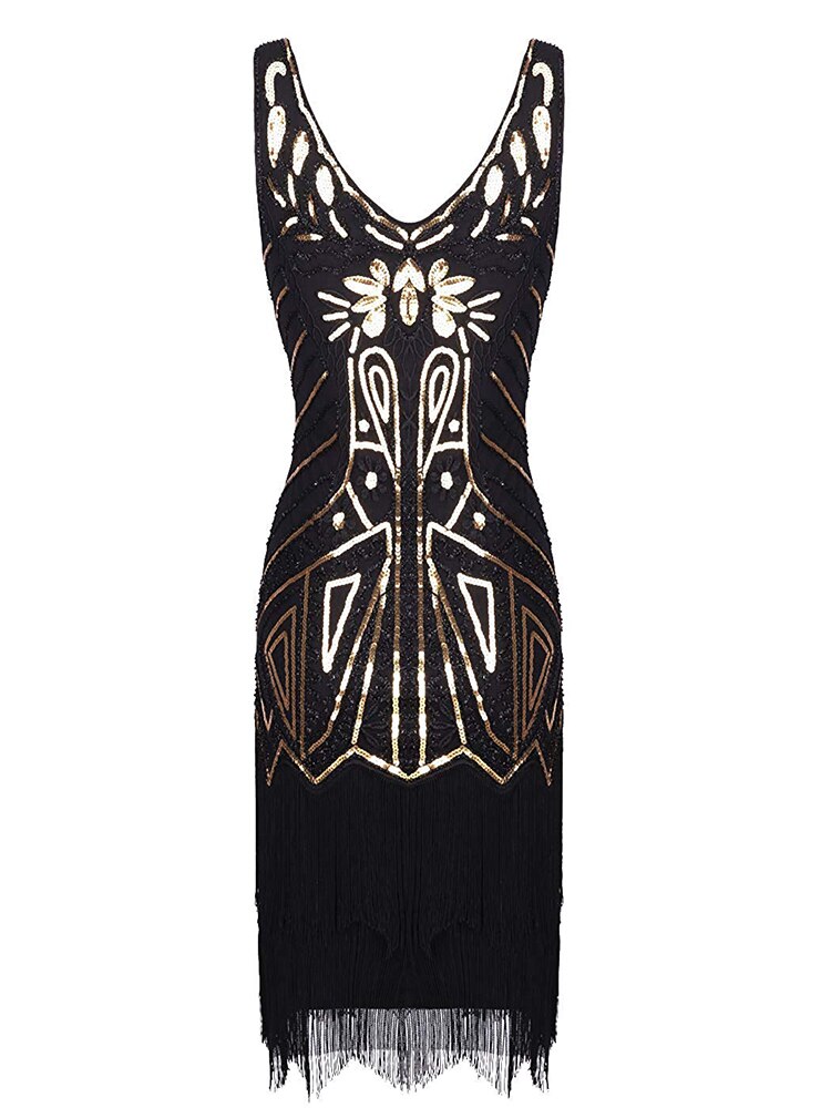 1920s Retro Sequin Tassel Dress Pin Bead Tassel Party Dinner Dress With Accessories
