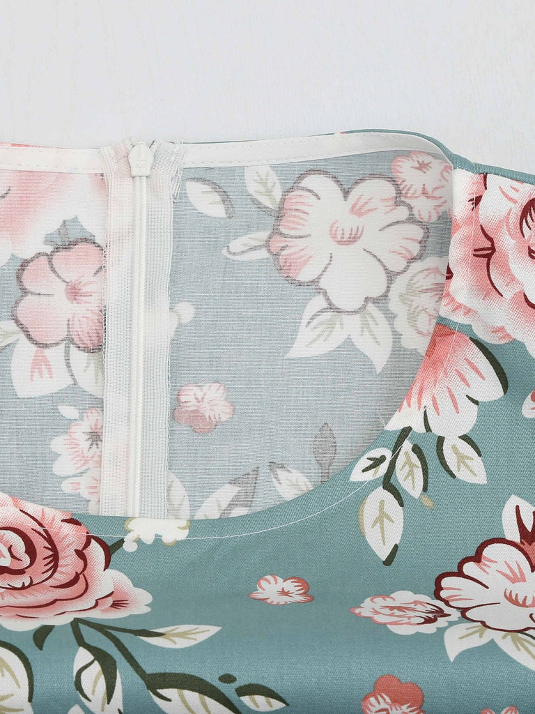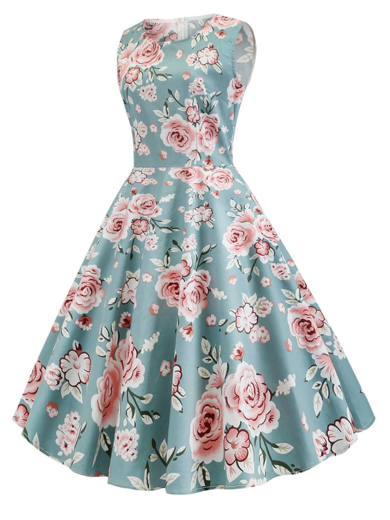 Casual bewitching, dames!?The swing dress is a gorgeous 1950s inspired frock for a vintage peach! Covered in a fabulous floral!?A vintage-inspired frock to steal their breath away, this sweet swing dress is cast in a stunning blue and pink and?dances with darling florals?throughout the midcentury silhouette.