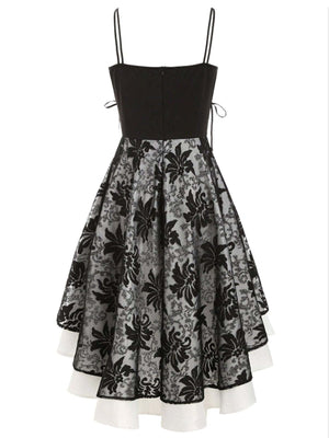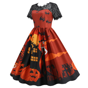 1950s Halloween Lace Patchwork Slim-fit Short Sleeve Swing Dress