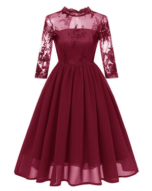 1950s Lace Embroidery Chiffon Swing Dress With Seven-point Sleeves