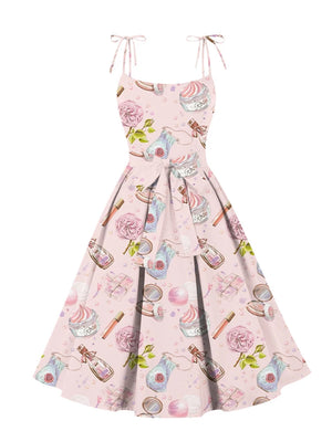 1950s Party for Women Floral Print Vintage Dress 2024 Summer Beach Vacation Outfits Spaghetti Strap Retro Sunflower Dress