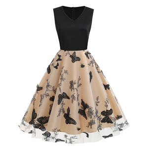 1950s Lace Floral Butterfly Mesh Swing Dress