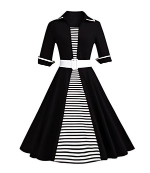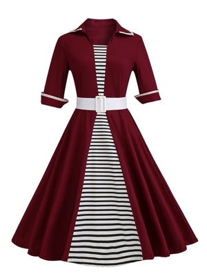 Shipping Fee: Free Shipping Worldwide Color: Wine Red/Black/Deep BluePattern: StripeNeckline: Turndown NeckSleeve: Half SleeveWaist Type: Mid TypeDress Length: Knee-LengthGender: WomenOccasion: CasualTurndown Neck designVintage and fashion styleGreat dress for a cocktail, partyCan also be used as daily wearPackage Content: 1 x...