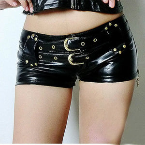 1PCS Sexy Faux Leather Hot Shorts Double Sashes Low Rise Waist Micro MINI Shorts With Zipper Open Night Culb Wear