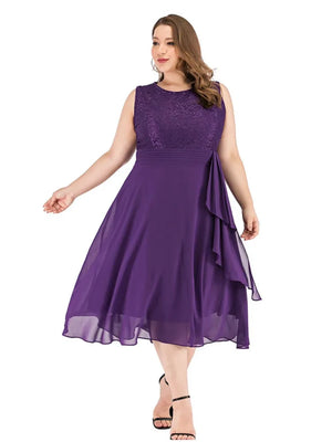 1XL 2XL 3XL 4XL Women Dress O-Neck Summer Lace and Chiffon High Waist A-Line Vintage Peplum Ladies Long Dresses