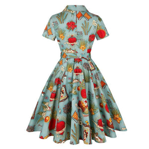1950s Style Cactus Print Vintage Button Up Cotton Rockabilly Elegant Short Sleeve A-Line Retro Dress