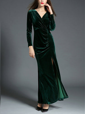 Shipping Fee: Free Shipping Worldwide Color: Black, Wine Red, Dark GreenPattern: SolidNeckline: V NeckSleeve: Long SleeveWaist Type: Mid WaistDress Length: FullGender: WomenOccasion: CasualSeason: Spring/Winter/AutumnFront Pleated designVintage and elegant styleGreat dress for a cocktail, partyCan also be used as daily wearPackage...