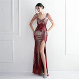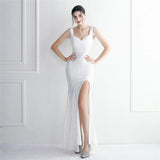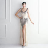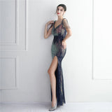 Sexy Slit Black Gold Sequin Evening Dress Sleeveless Beading Formal Party Maxi Dress Long Prom Dress