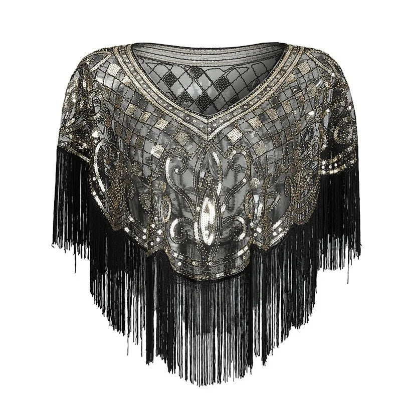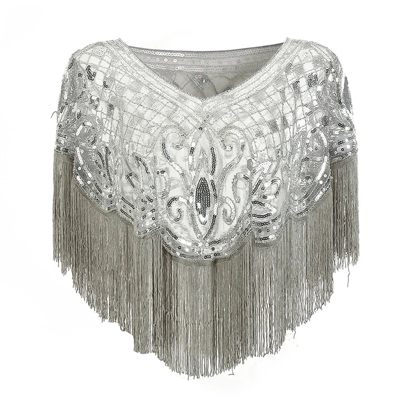 Vintage 1920s Scarves Pashmina Tassel Beaded Flapper Shawl Women Luxury Sequin Mesh Cape Cover Up Shawls and Wraps