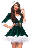 Deluxe Velvet Christmas Dress Hooded Female Santa Claus Costume Women Sexy Green Xmas Party Dress