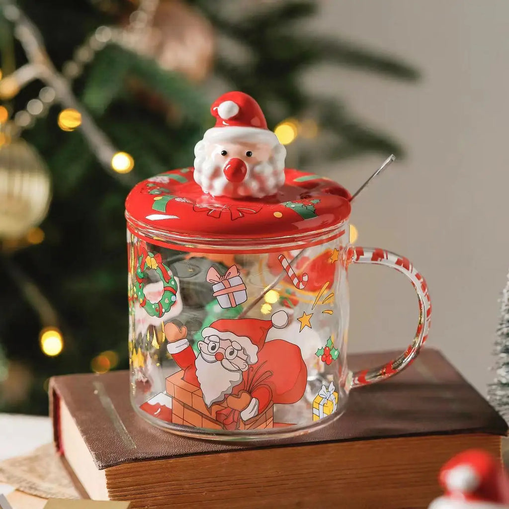 Christmas Mugs Ceramic Santa Claus Coffee Mug with Lid and Spoon Christmas Decoration Office Home Milk Cup New Year Gifts