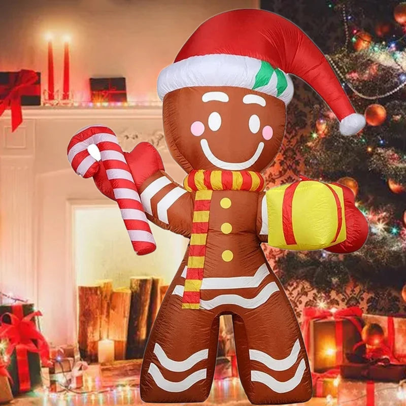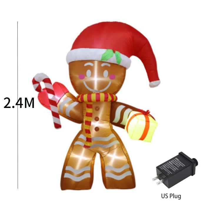 LED Lights 2.4M Christmas Outdoors Gingerbread Man Inflatable Model Party Courtyard Props Festival Decoration Gift