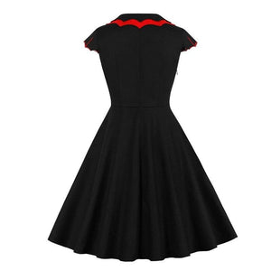 Black 50S Vintage Festival Gift Embroidery Elegant Christmas Women Keyhole Cap Sleeve A Line Cotton Dress