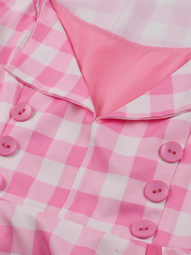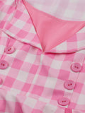 Buttons Front High Waist Pink Plaid Dress Christmas Evening Party Wear Women Sleeveless Rockabilly Vintage Dress