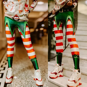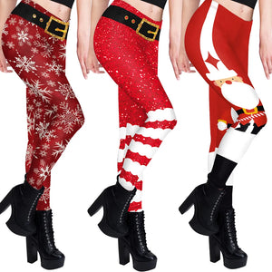New Year Women's Christmas Ladies Capris Stripe High Waist 3D Print Leggings Tights Sexy Xmas Party Trousers