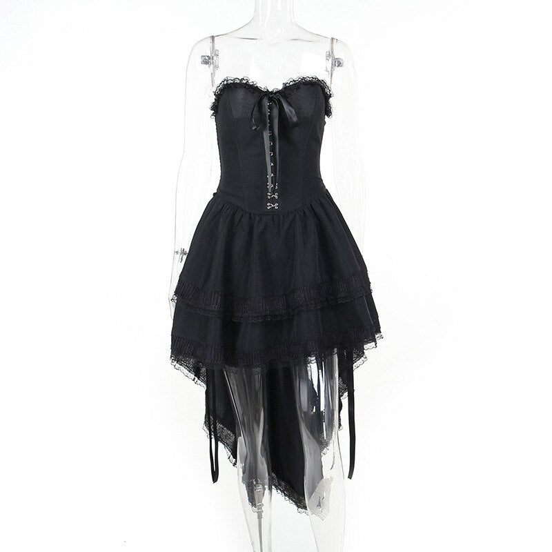 Gothic Hi Low Corset Swing Women Mall Goth Lace Trim Sleeveless Bodycon Tube Formal Strapless Evening Dress