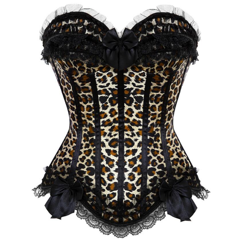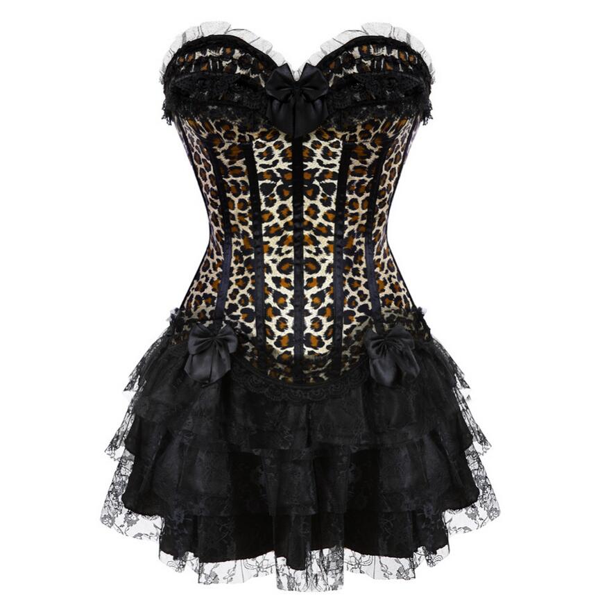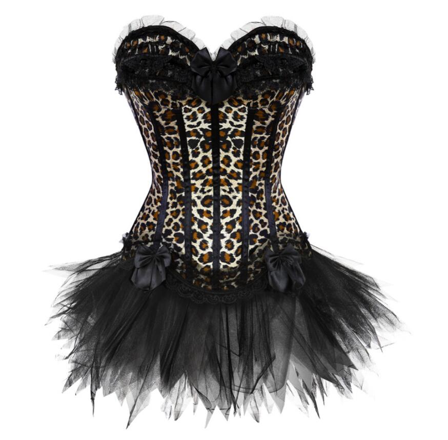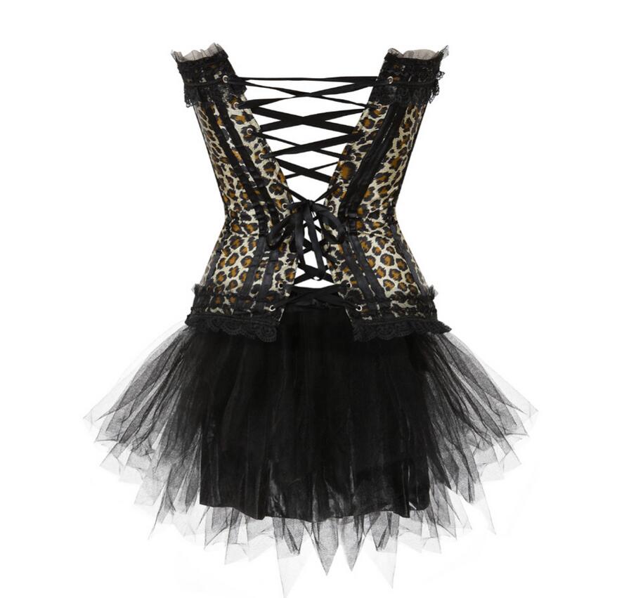 S-XXL Women Burlesque Overbust Corset Bustier Top With Mini TuTu Skirt Fancy Dresses Costume Sexy Leopard Corsets Dress