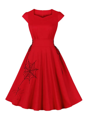 Embroidered Spider Halloween Party Clothing for Women Sweetheart Neck Lace-Up High Waist Cotton Vintage Corset Dresses