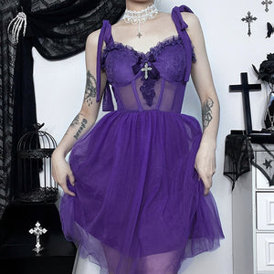 Gothic Y2K Dark Mesh Corset Mini Dress Elf Girl Backless Slim Sexy E-Girl Darkness Street Grunge Tank Dress