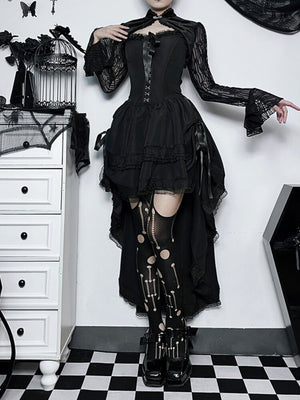 Criss Cross Eyelet Detail Halloween Cosplay Evening Party Dresses for Women High Waist Vintage Mesh Overlay Corset Dress