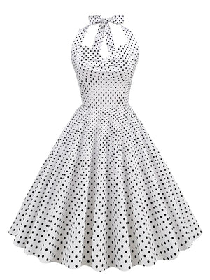 Halter Neck 50s Pin Up Polka Dot Vintage Corset Dress Elegant Backless Party Sexy Robe Women Fit and Flare Pocket Dresses