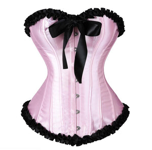 Overbust Corset Plus Size Satin Lace Up Sexy Corselet Corsets and Bustiers Tops Waist Cincher Corselet Gothic Lingerie Women
