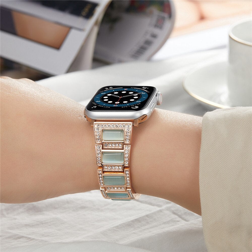 Diamond Stainless Steel Strap For Apple Watch Band 6 40mm 44mm Women Opal Luxury Bracelet iwatch series Strap 5 4 SE 3 38mm 42mm