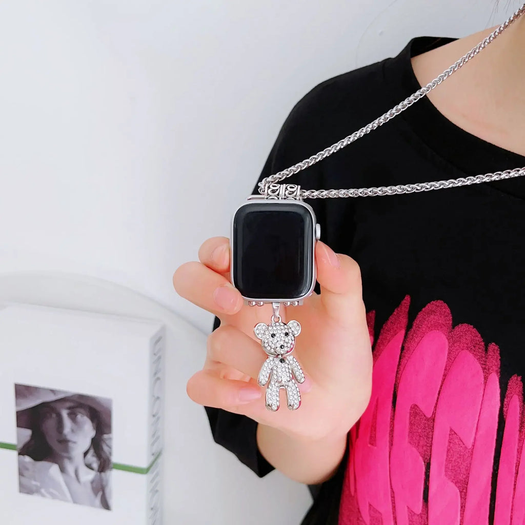 Necklace Diamond Bear Strap For Apple Watch Band 49mm 41mm 45mm 40 44mm 38 42 For iwatch Series 8 7 SE 6 5 4 3 Correa Watchband