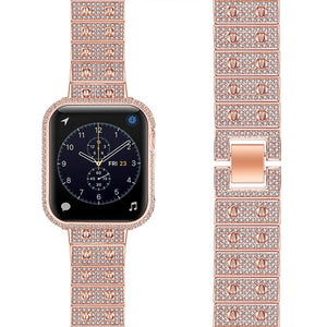Womens Diamond Case + Strap for Apple Watch Band 7 6 41mm 45mm 38/42/40/44mm Metal Bracelet for iWatch Series SE 3 Jewelry Cover