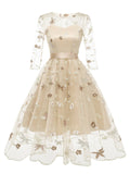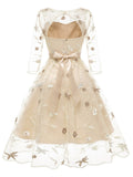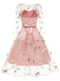 3/4 Sleeve 1950s Floral Embroidery Dress
