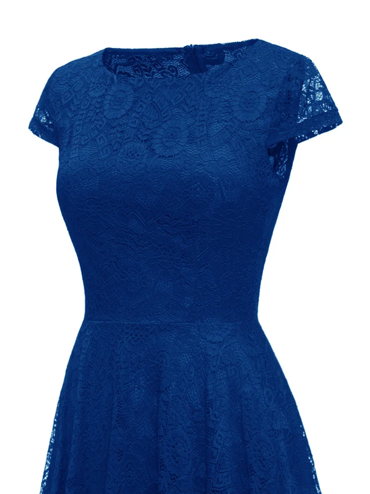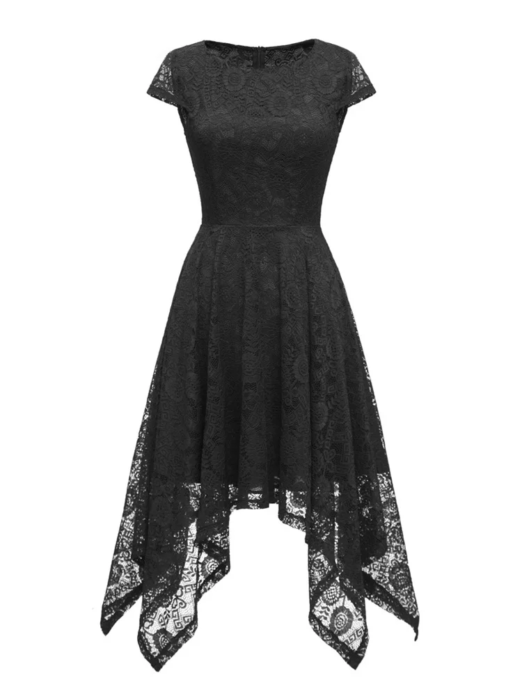 Evening Party Elegant Lace Dresses for Women O-Neck Cap Sleeve Asymmetrical Hem Fall Outfits Long Dress