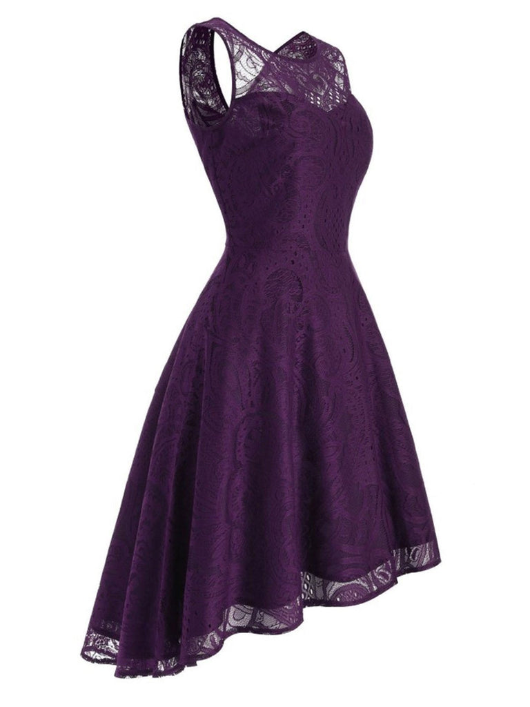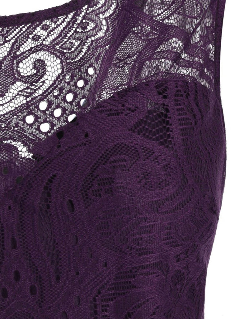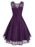 An adventurous infused stunner from Retro Stage! Turn back your fashion clock to the midsts of the 1950s, where feminine chic reigned supreme, and dresses oozed pure elegance and seduction. A gorgeous vintage style dress full of feminine radiance, the gorgeous purple?silhouette is dancing with lace floral?throughout the midcentury silhouette