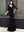 Tailored Collar V-neck Formal Dress Black Long-sleeve Tulle A-line Occasion Evening Dress Women Gowns Burgundy Dress