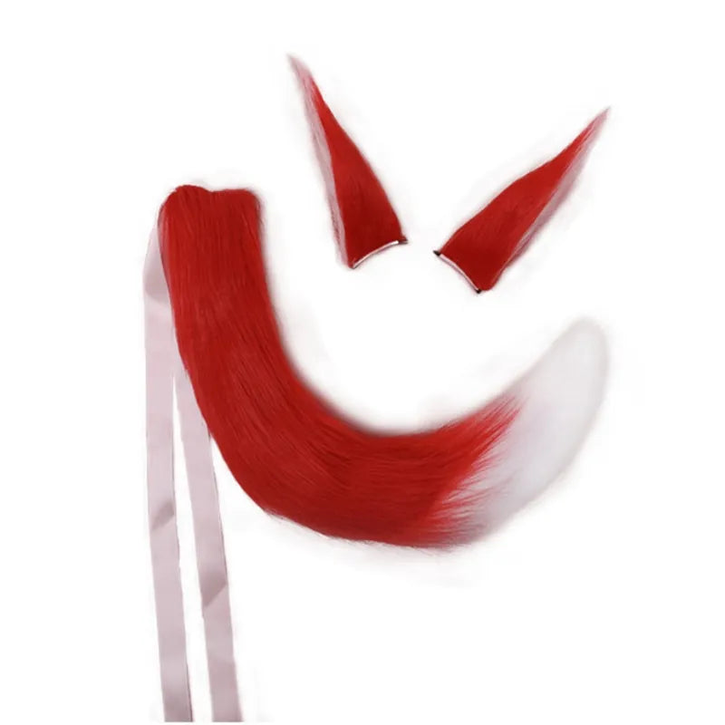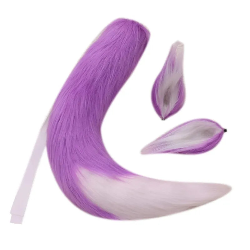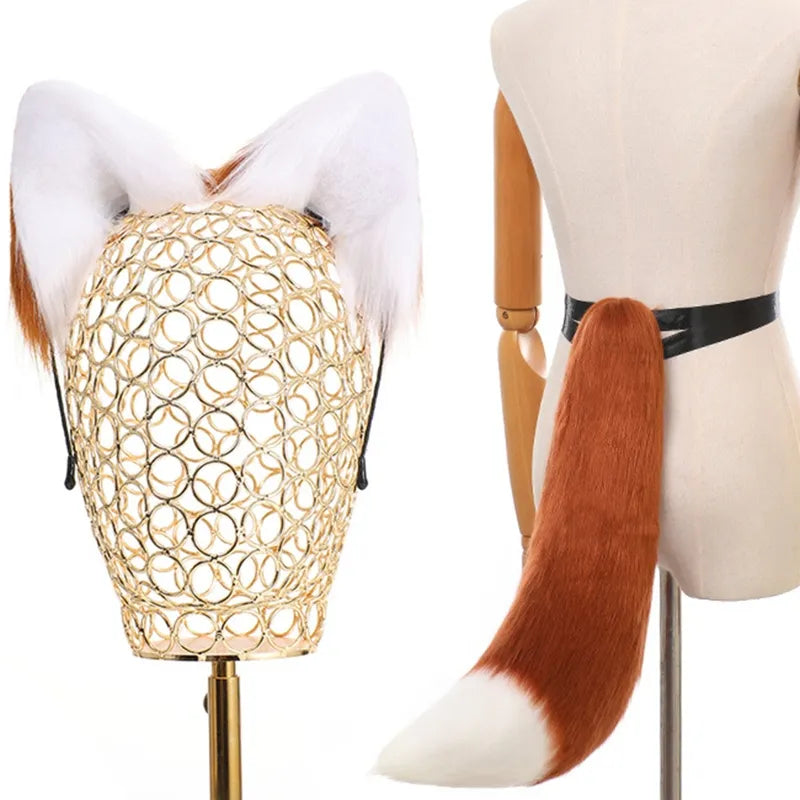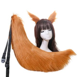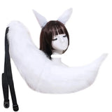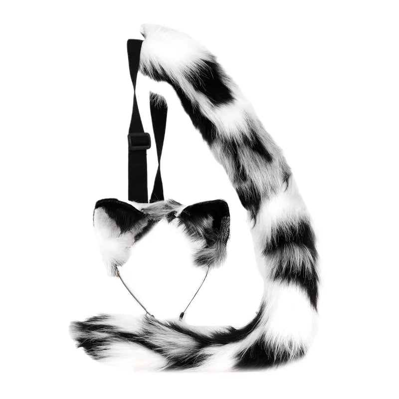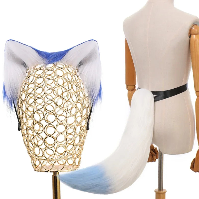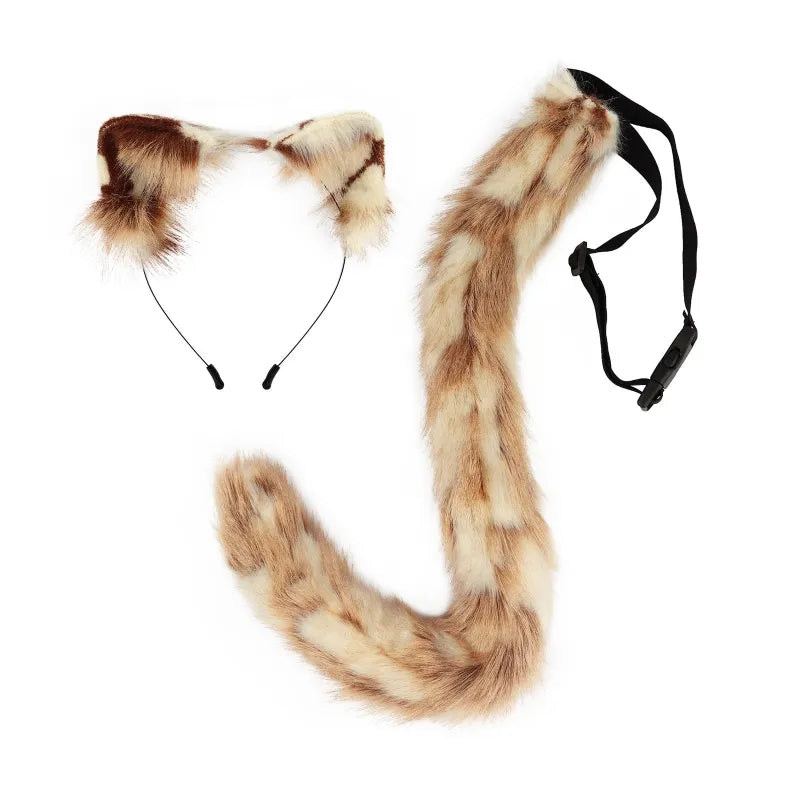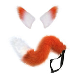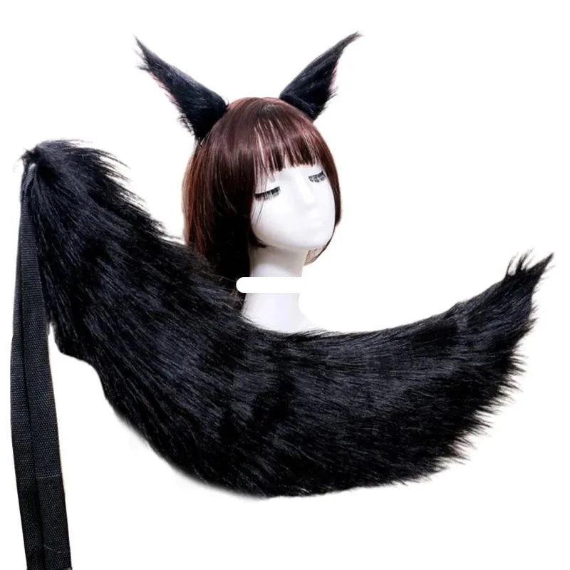 2pcs Cat Ears and Wolf Fox Animal Tail Cosplay Costume Faux Fur Hair Clip Headdress Halloween Birthday Party Plush Set