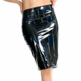 Black Holographic Shiny Laser High Wais Latex Leather Skirts Wet Look Metallic Pencil Skirts