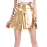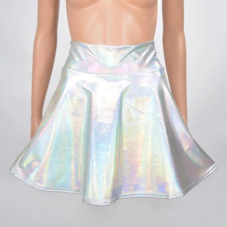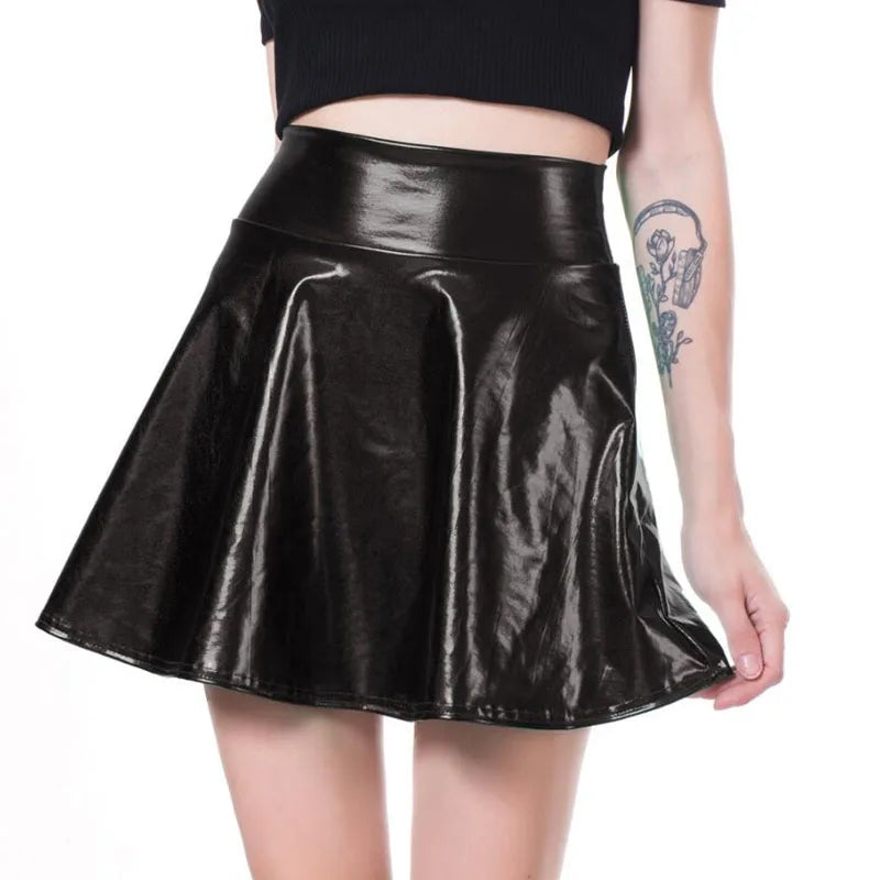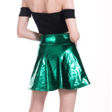 Summer Sexy Laser High Waist Mini PU Leather Skirt Club Party Dance Shiny Holographic Harajuku Metallic Pleated Bottom