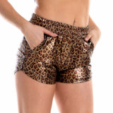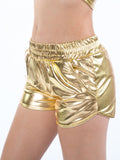 Summer Women Metallic Elastic Waist Shiny Hot Pants Rave Dance Booty Shorts with Pockets Club Bottoms