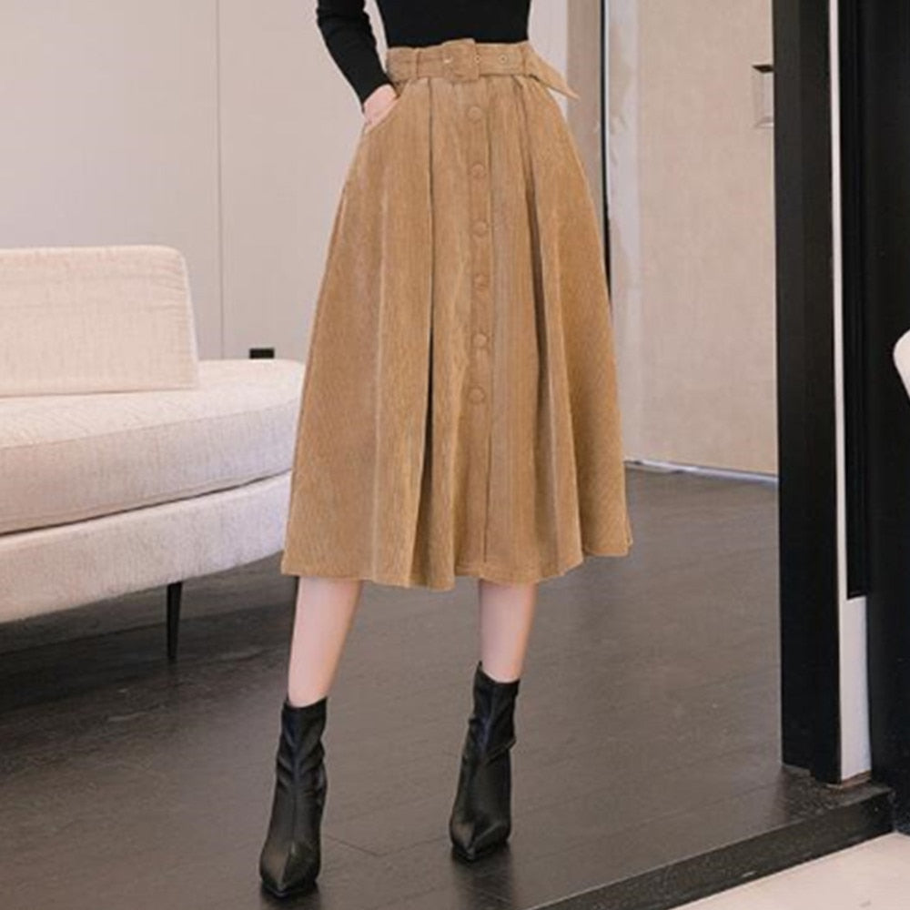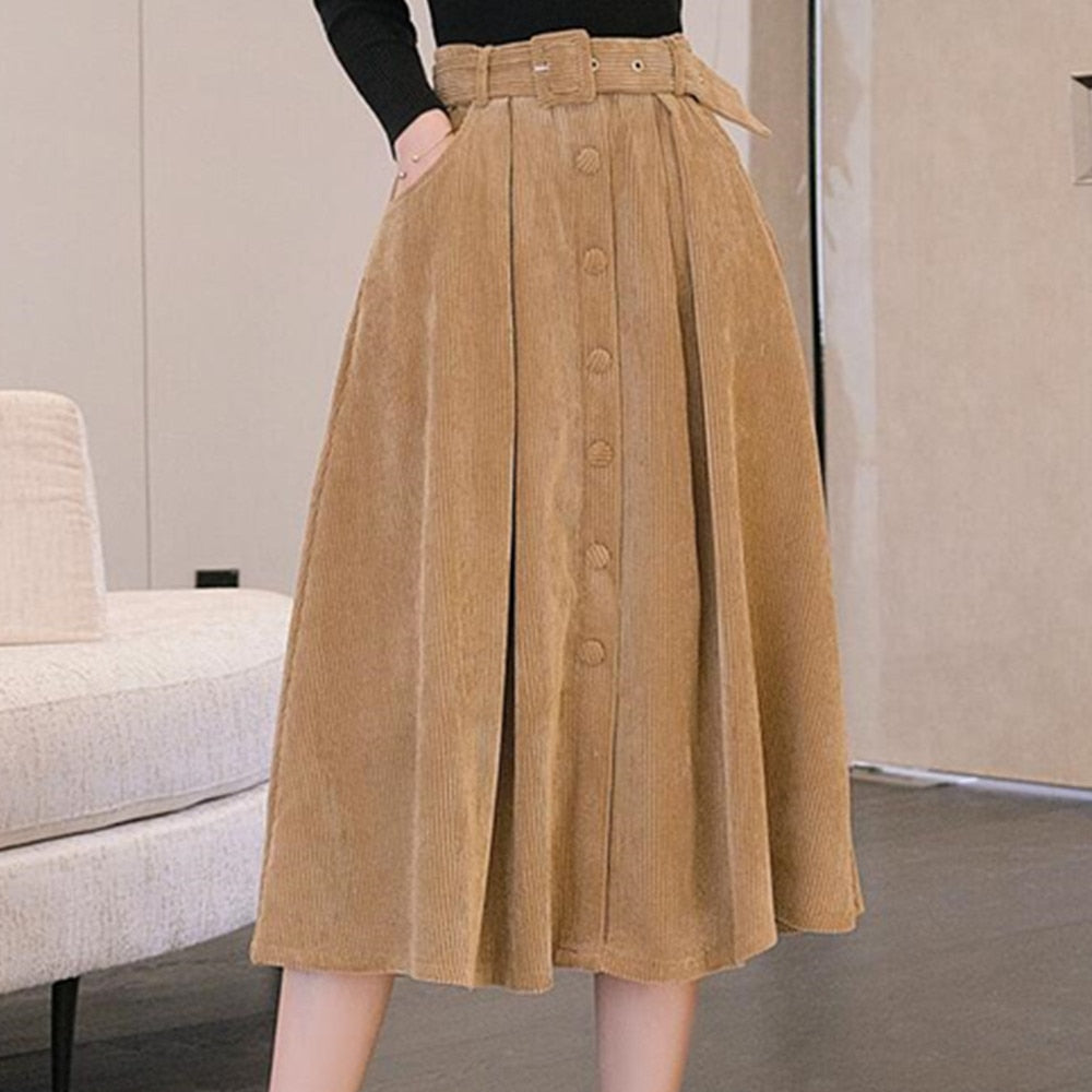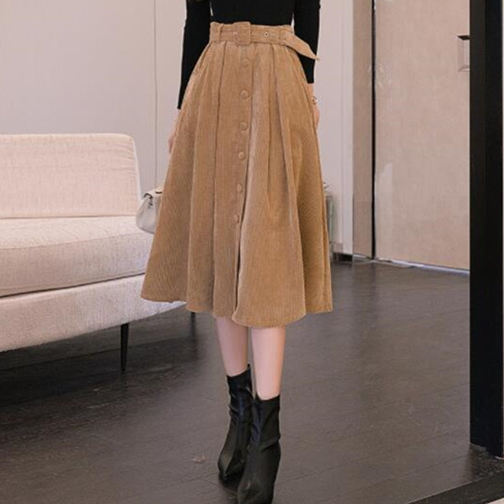 Title: Vintage Corduroy Skirts 2022 Fashion Women Autumn High Waist Long Skirt Jupe Female Solid Casual Vestidos Loose Faldas Saia